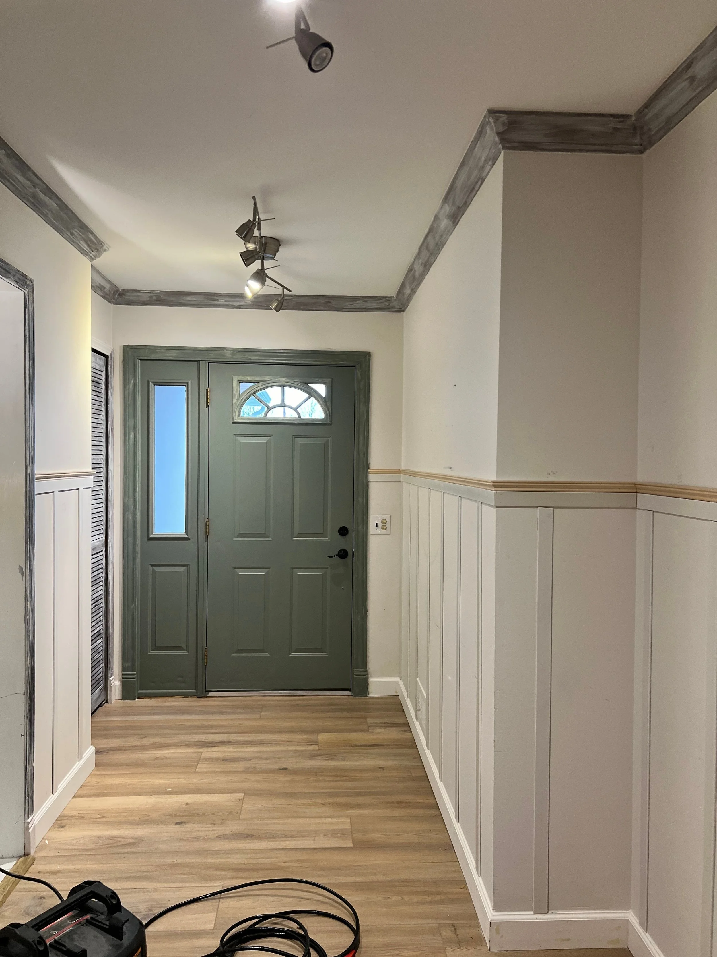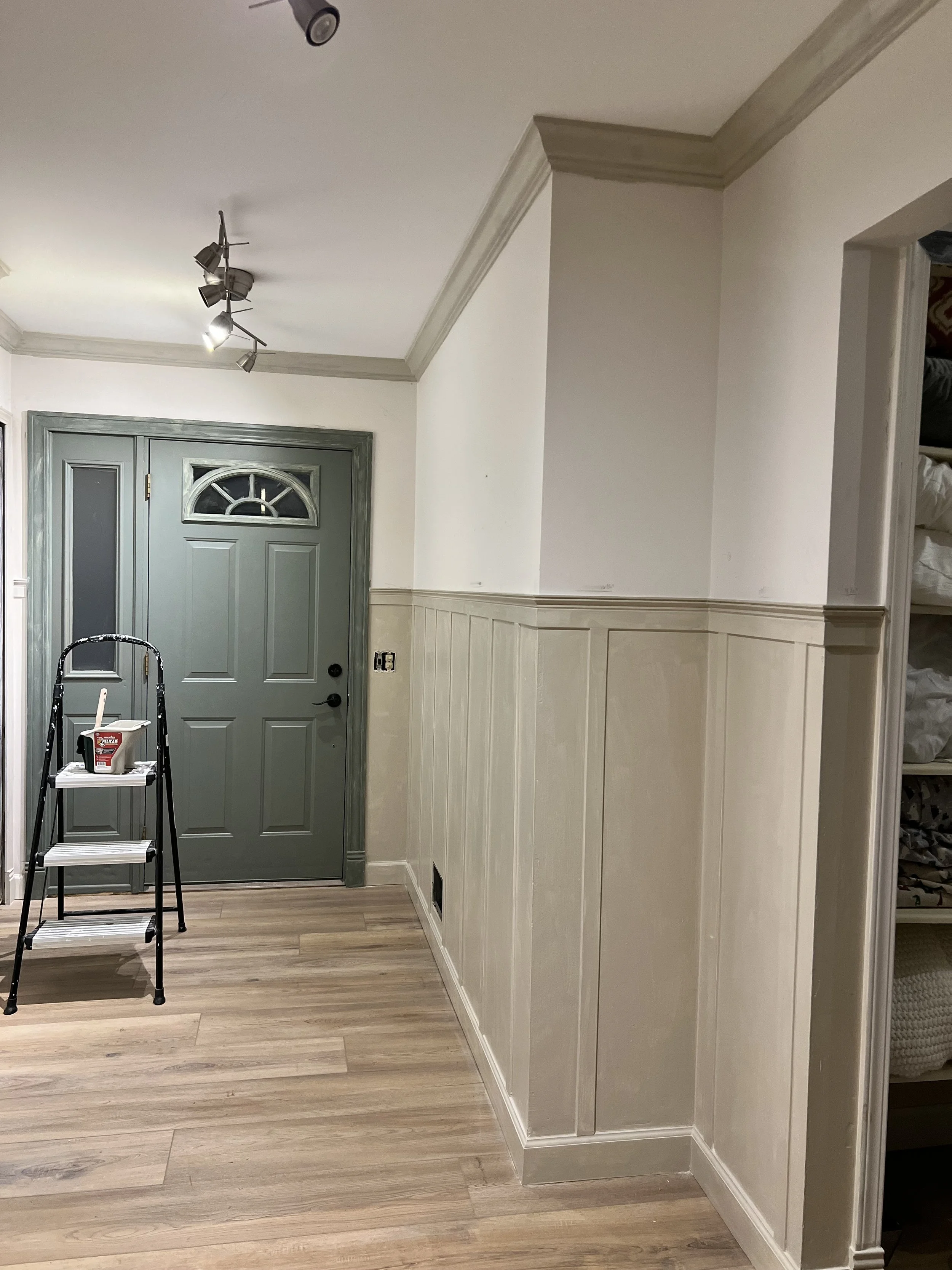 Our next project is sprucing up our entryway with some faux board and batten walls! We’ve had this project in mind for a couple of months, and are so excited to tackle it.