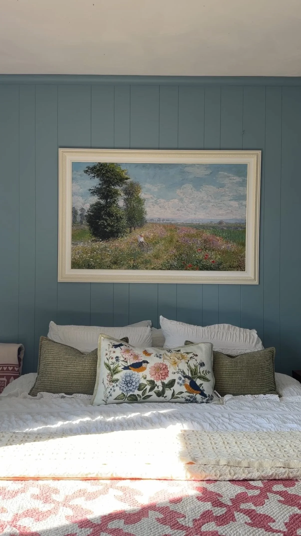 While the paint was still wet, we would go over it with a dry roller brush and/or the plastic grocery bag for a more natural look.